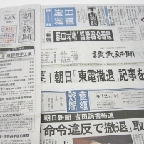 朝日新聞の記事取り消しについて報じる9月12日付新聞各紙 朝日新聞の「敵」は朝日にある。かつて、トヨタ自動車の奥田碩氏が社長時代、「トヨタの敵はトヨタ」と言ったが、その心は、「資金力も販売力も豊富なトヨタが衰退するとすれば、それは驕りからの自滅である」ということにある。同様に従軍慰安婦検証報道に始まった世間の朝日批判、事後対応のまずさの本質的要因は、危機意識の欠乏からくる内部の権力闘争にある。ある biz-journal.jp