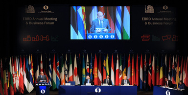 グルジアの首都トビリシで開かれた欧州復興開発銀行の年次総会で演説するスマ・チャクラバルティ総裁(2015年5月14日撮影)。 【AFP】欧州復興開発銀行は14日、中国の加盟を承認したと発表した。これにより、世界第2位の経済大国である中国に、欧州・アフリカ・中東への新たな投資ルートが開かれた。 スマ・チャクラバルティ総裁は声明で、「中国のEBRD加盟により、EBRDの活動地域への中国グループによる | ||||