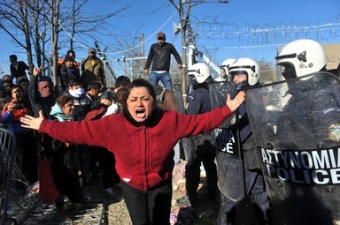 ギリシャ・イドメニのマケドニアとの国境で、移民・難民と警察との衝突の最中に叫ぶ女性(2015年12月3日撮影)。 【AFP】「僕らは全員ここで死ぬ、よそへは行かない」――ギリシャとマケドニアとの国境で3日、モロッコから来た移民のアブドゥルさんは、鉄道の高圧電線を握りしめて感電死した友人男性の遺体を指さして言った。ギリシャ警察は、国境で何日も足止めが続いている現状に絶望しての自殺とみている。 モロ | ||||