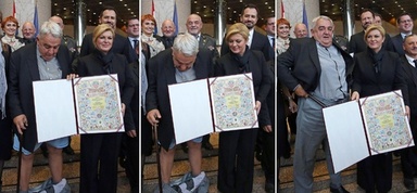 大統領の隣で赤っ恥...人権活動家のズボン落ちる クロアチア <img alt="クロアチアの首都ザグレブで、コリンダ・グラバルキタロビッチ大統領(右)との写真撮影中にズボンがずり落ちてしまったイバン・ズボニミル・チーチャク氏(左、2015年12月8日撮影)。 " src="http://afpbb.ismcdn.jp/mwimgs/9/b/700w/img_9b2f25153a20ff9ed58a46cc86ff0963152127.jpg" />クロア | ||||