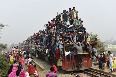 バングラデシュの首都ダッカ郊外のトンギで開催されたイスラム教徒の集会「ビッショ・イジュテマ」を終え、大混雑した列車に乗って会場を後にする信者たち(2016年1月10日撮影)。 【AFP】バングラデシュの首都ダッカ郊外のトンギで8~10日にかけて、イスラム教徒の集会「ビッショ・イジュテマ」が開催された。イスラム教徒の年次行事としてはサウジアラビアにある聖地メッカへの大巡礼「ハッジ」に次いで世界で2 | ||||