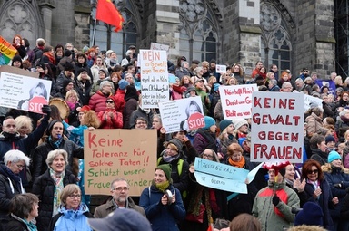 ケルン暴行事件の被害届500件超す、4割が性犯罪 計画的犯行か ドイツ西部ケルンの大聖堂前で、大みそかの集団性犯罪事件に抗議する人々(2016年1月9日撮影)。 【AFP】ドイツ西部ケルンの警察当局は10日、新年行事中に起きた移民の関与が疑われている暴力事件の被害届けが516件に達し、うち4割が性犯罪絡みだったと発表した。移民・難民に寛容な政策を取ってきたアンゲラ・メルケル首相への突き上げが、さらに強まりそうだ。 被害届けは前日発表の379件から急増した。複 | ||||
